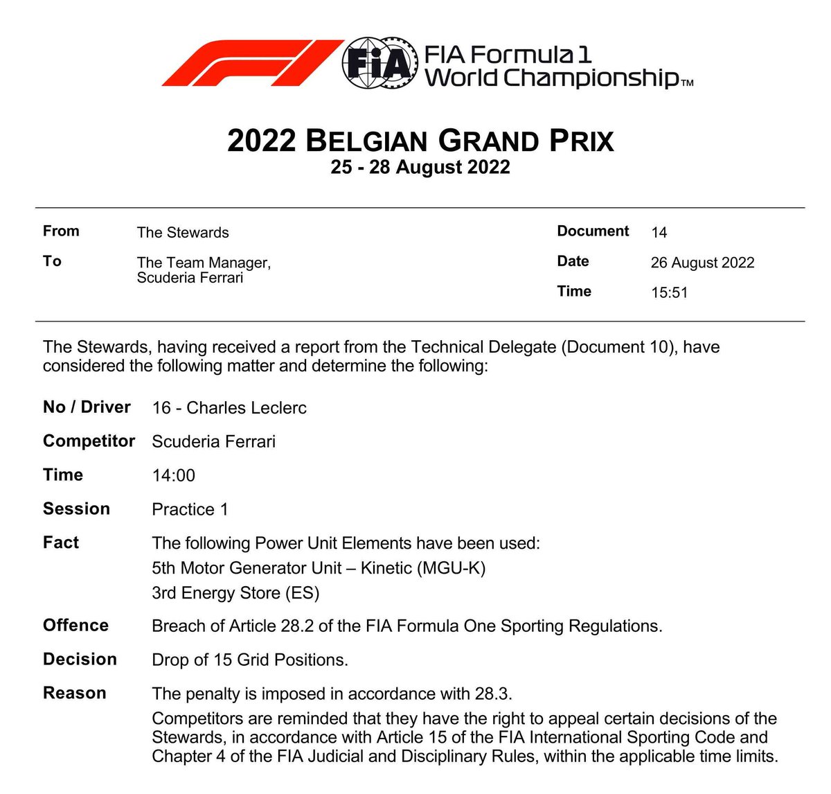 Hier is het bewijs dat Leclerc niet achteraan hoeft te starten en Max wel.