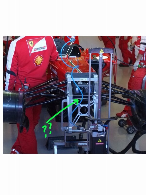 Ook is Ferrari bezig een \"ramp\" uitlaat systeem alla Red Bull te implementeren.. vandaar ook dat ze giga ruimte aan het creëren zijn aan de achterzijde van de Ferrari..