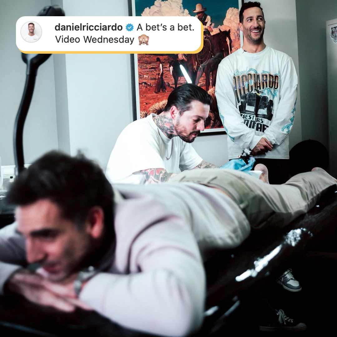Cyril Abiteboul heeft de beloofde tattoo inmiddels laten zetten, in het bijzijn van Ricciardo. Morgen volgt de onthulling.