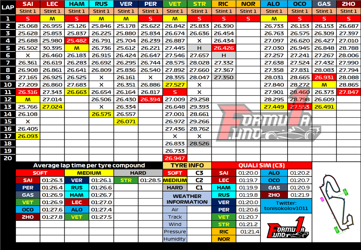 Na de VSC-situatie begonnen de coureurs met hun snelle rondjes. Sebastian Vettel noteerde de eerste snelle tijd maar daarna kwamen de grote kanonnen. De Ferrari's van Charles Leclerc en thuisrijder Carlos Sainz waren direct snel. De Mercedessen leken ook vlot, George Russell en Lewis Hamilton waren namelijk sneller dan Sainz. Hierdoor kwam Max Verstappen niet verder dan de vijfde tijd van de sessie.